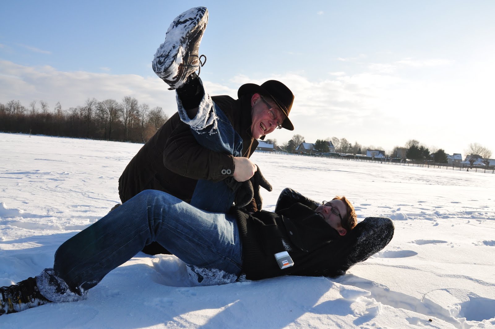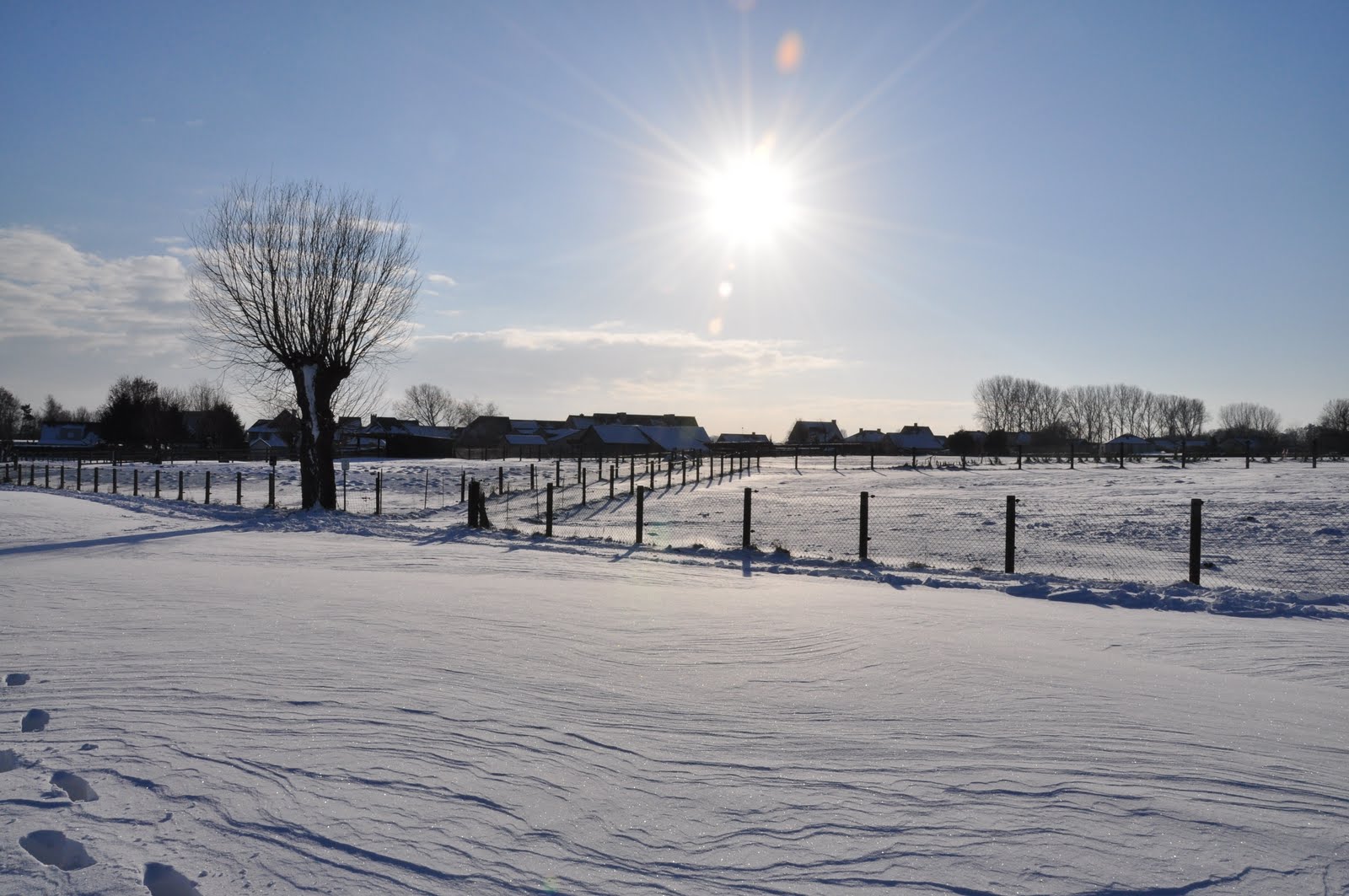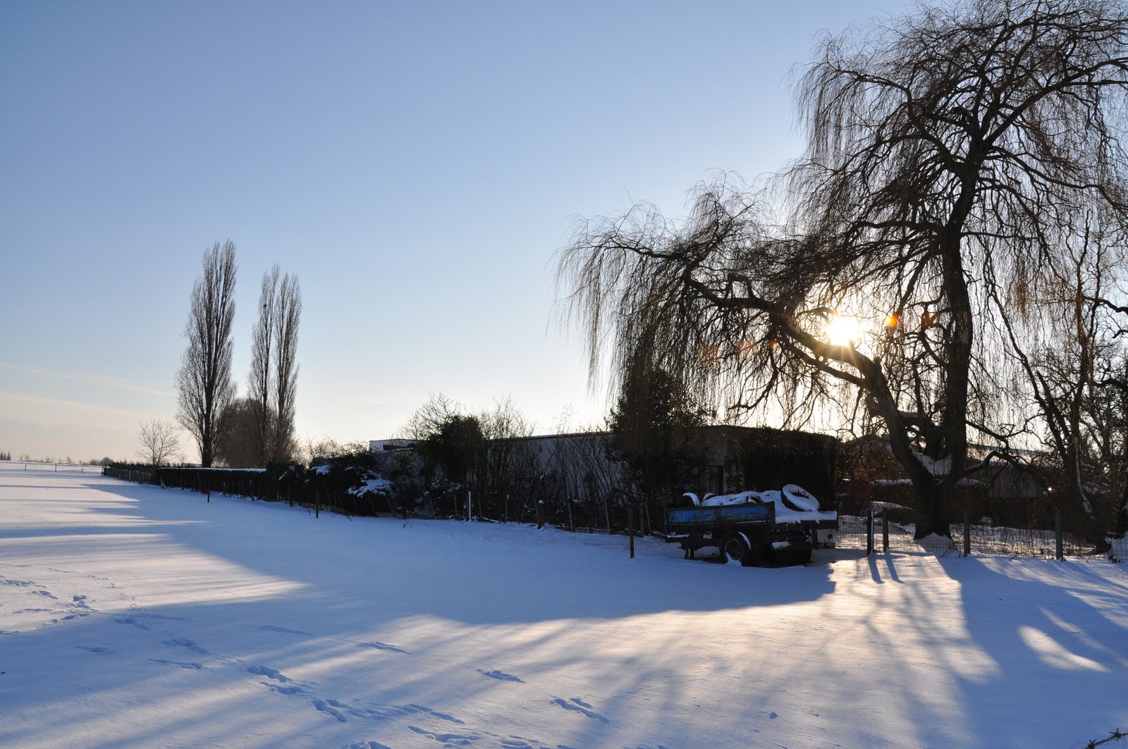 那晚我們在公婆家與親友聚餐至深夜,第二天睡到快中午才睡眼惺忪眼地吃早餐。看著窗外的好天氣,決定背上相機出外踏雪去,公公和J也一起來了。